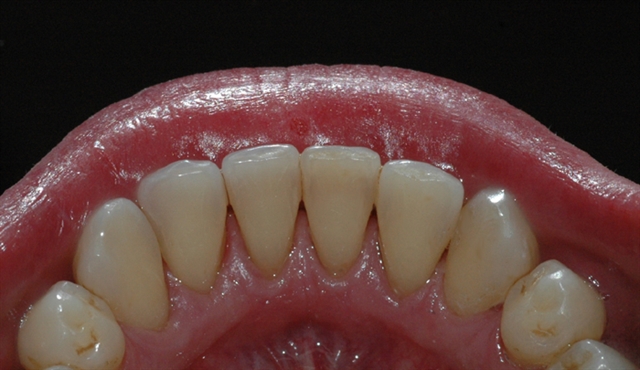 Her kan man se misfarging og tannsten på tennenes fremside.